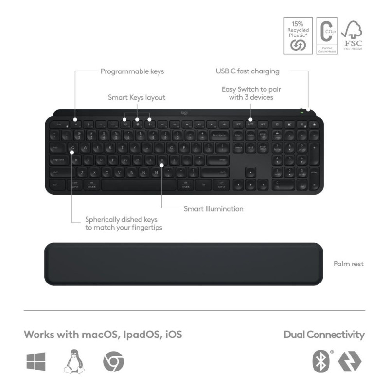 KEYBOARD +MOUSE COMBO MXKEYS S/BLACK 920-011614 LOGITECH
