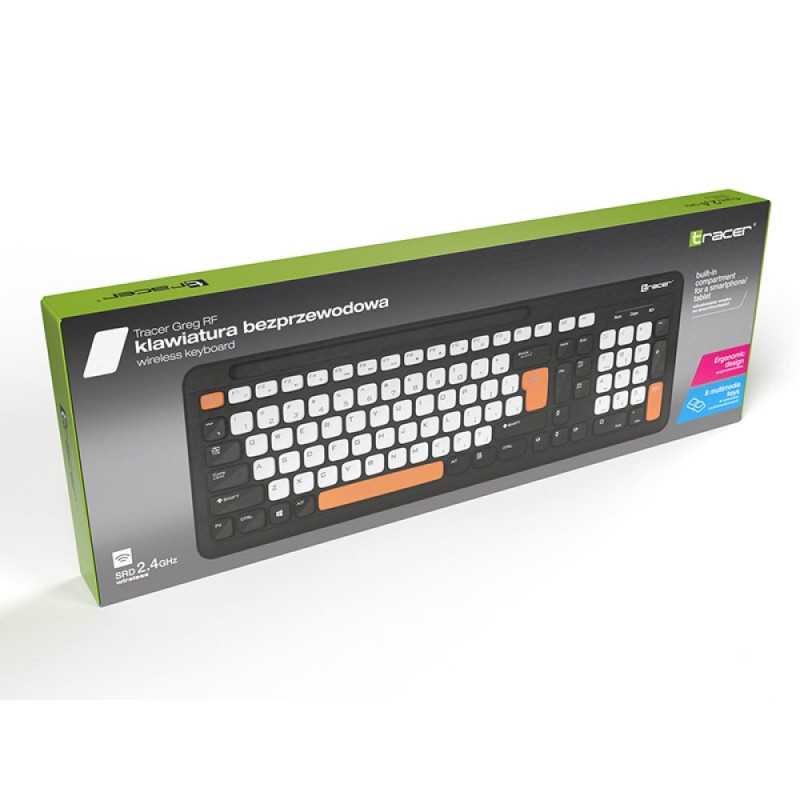 Klawiatura Tracer GREG RF jest świetnym rozwiązaniem jeżeli szukasz wygodnej i funkcjonalnej klawiatury bezprzewodowej z niskim skokiem. Jej unikalną funkcją jest wnęka na tablet/telefon oraz 8 klawiszy multimedialnych.