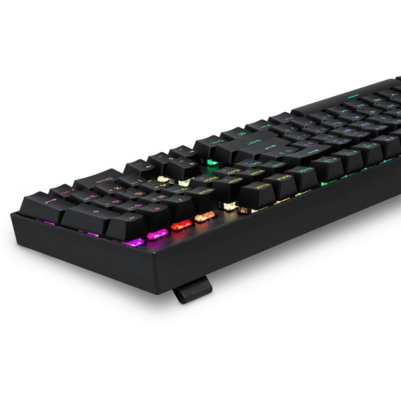 The Defender Mirax Gk-352 Mechanic Outemu Blue Keyboard is a mechanical gaming keyboard. This full-size mechanical keyboard features clicky OUTEMU Blue switches and adjustable RGB backlighting. The keyboard boasts a reliable, moisture-resistant design. It features anti-ghost technology for all keys and locks the Win key while gaming. Keycap and switch pullers are included.