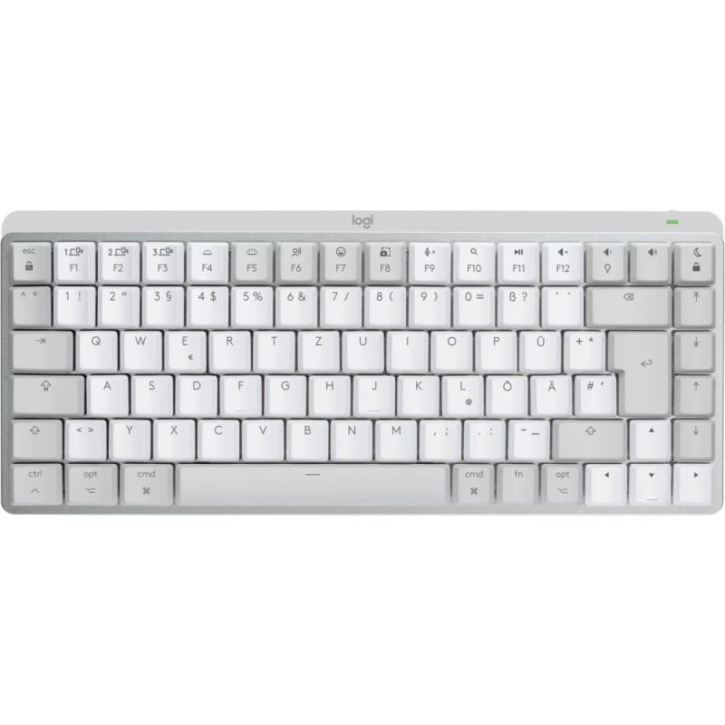 "Logitech MX Mechanical Mini for Mac. Tastatur Formfaktor: Tenkeyless (80 - 87 %). Tastatur-Stil: Gerade. Übertragungstechnik: Kabellos, Geräteschnittstelle: RF Wireless + Bluetooth, Tastatur-Switch: Mechanischer Switch, Tastaturaufbau: QWERTZ. Typ der Hintergrundbeleuchtung: LED. Kabellänge: 1 m. Empfohlene Nutzung: Büro. Produktfarbe: Grau"