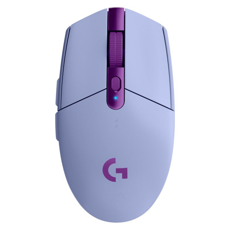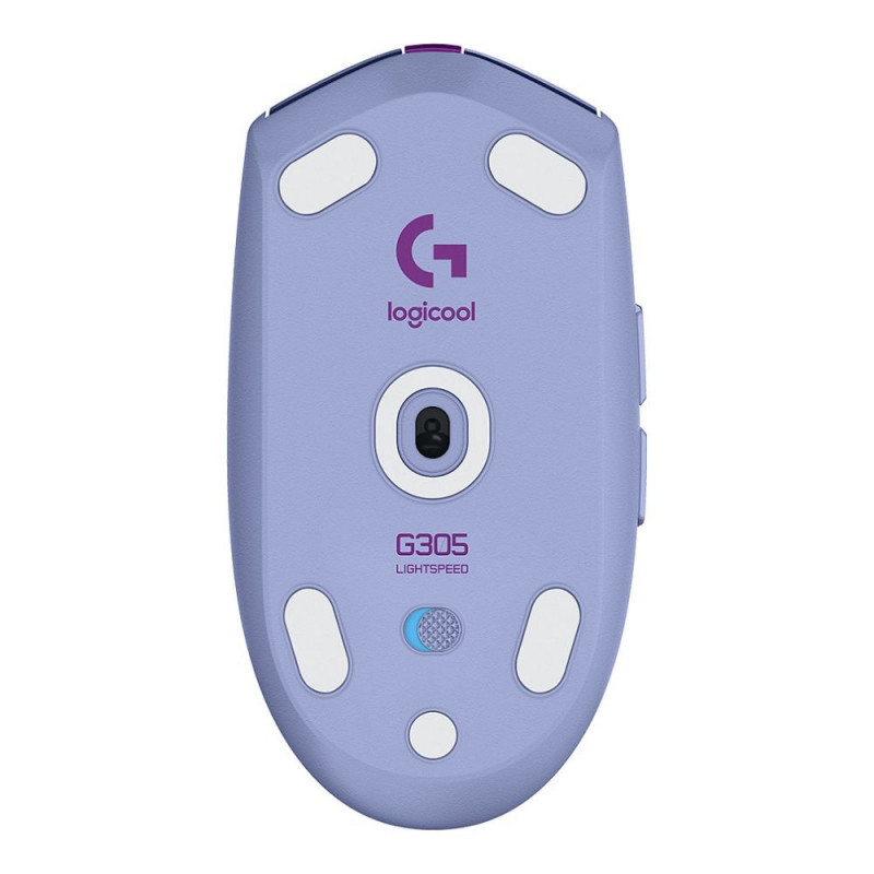 "Logitech G G305. Formfaktor: rechts. Bewegungerfassungs Technologie: Optisch, Geräteschnittstelle: RF Wireless, Bewegung Auflösung: 12000 DPI, Reaktionszeit: 1 ms, Tastentyp: Gedrückte Tasten, Knopfanzahl: 6, Scroll Typ: Rad, Beschleunigung (Max.): 40 G. Farben der Beleuchtung: Blau, Grün, Rot. Energiequelle: Batterien. Produktfarbe: Lila"