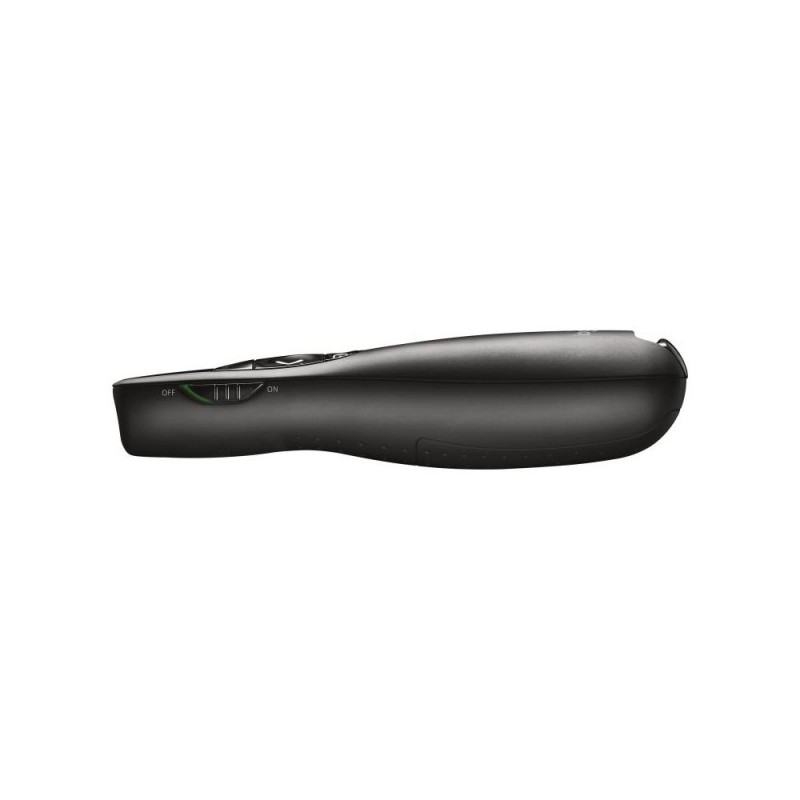 Logitech R400 is a compact wireless remote with laser pointer for Windows devices.