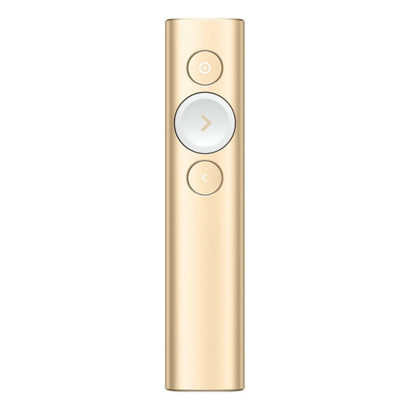 "Logitech Spotlight. Kabelloser Receiver-Anschluss: USB, Wireless-Technologien: Bluetooth/RF, Receiver Typus: Mini-Empfänger. Produktfarbe: Gold, Präsentierfunktionen: Fernbedienung, Material: Aluminium, Kunststoff. Akku-/Batterietechnologie: Lithium Polymer (LiPo), Akku-/Batteriekapazität: 80 mAh, Ladezeit: 60 min. Unterstützt Mac-Betriebssysteme: Ja, MacOS, Mindestsystemvoraussetzungen: - Windows7 oder höher - macOS 10.10 oder höher - PowerPoint, Keynote, PDF, Google Slides oder.... Breite des Receivers: 1,72 cm, Tiefe des Receivers: 4,04 cm, Höhe des Receivers: 6,8 mm"
