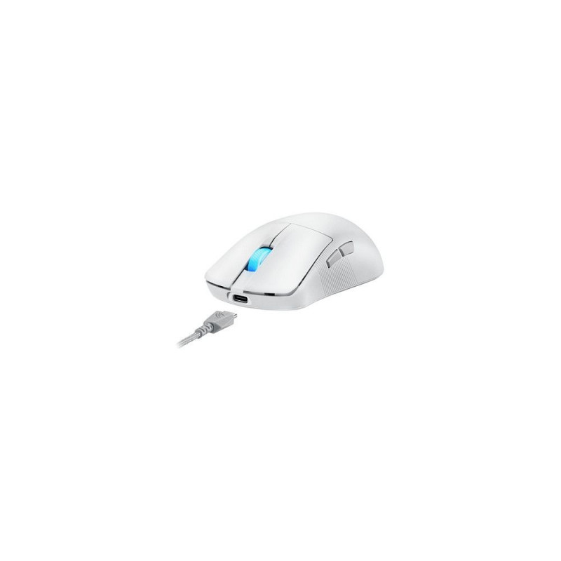 "ASUS ROG Harpe Ace Mini. Formfaktor: Beidhändig. Bewegungerfassungs Technologie: Optisch, Geräteschnittstelle: RF Wireless + Bluetooth + USB Type-C, Bewegung Auflösung: 42000 DPI, Scroll Typ: Rad. Energiequelle: Batterien / Kabel. Produktfarbe: Weiß"