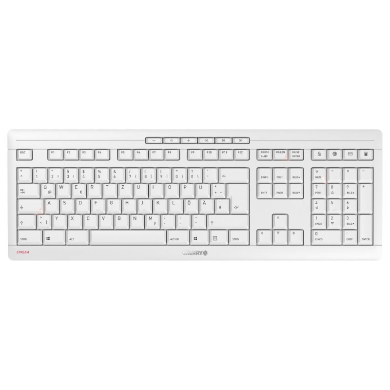 "CHERRY Stream Desktop Recharge. Tastatur Formfaktor: Volle Größe (100%), Übertragungstechnik: Kabellos, Geräteschnittstelle: RF Wireless, Tastaturaufbau: QWERTY, Tastatur - Tastenanzahl: 115, Empfohlene Nutzung: Universal. Produktfarbe: Grau. Maus enthalten"