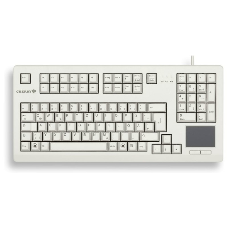 "CHERRY TouchBoard G80-11900 Kabelgebundene Tastatur mit Touchpad, Hell Grau, USB (QWERTZ - DE). Tastatur Formfaktor: Volle Größe (100%). Tastatur-Stil: Gerade. Übertragungstechnik: Kabelgebunden, Geräteschnittstelle: USB, Tastatur-Switch: Mechanischer Switch, Tastaturaufbau: QWERTZ, Tastatur - Tastenanzahl: 105. Kabellänge: 1,75 m. Empfohlene Nutzung: Universal. Produktfarbe: Grau"