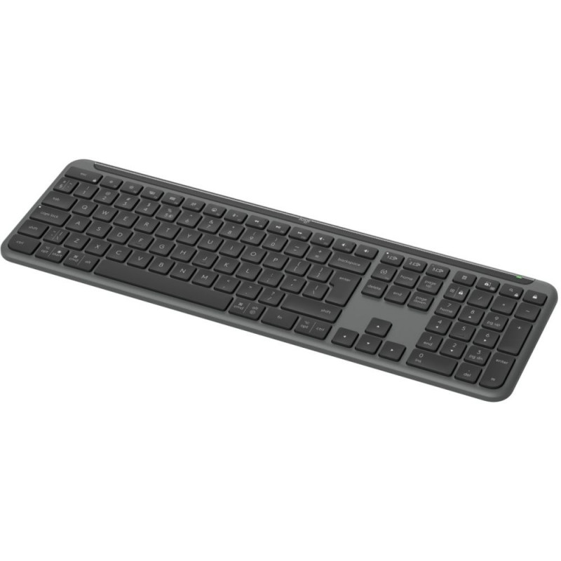 "Logitech Signature Slim K950. Tastatur Formfaktor: Volle Größe (100%). Tastatur-Stil: Gerade. Übertragungstechnik: Kabellos, Geräteschnittstelle: RF Wireless + Bluetooth, Tastatur-Switch: Scherenschalter, Tastaturaufbau: QWERTY, Empfohlene Nutzung: Büro. Produktfarbe: Graphit"