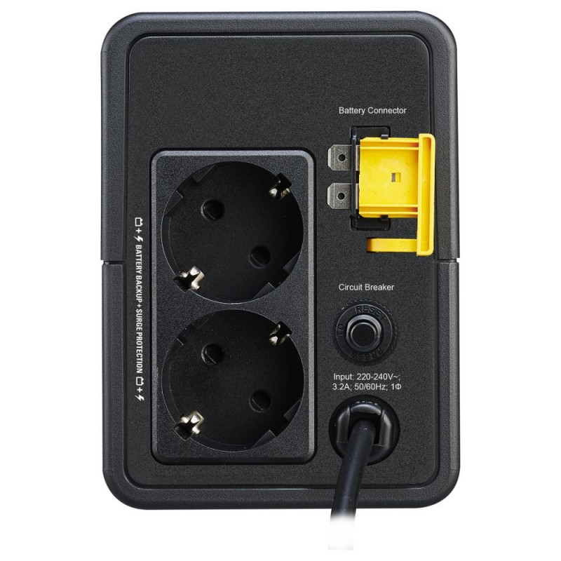 "APC BVX700LI-GR. USV-Topologie: Line-Interaktiv, Ausgangskapazität: 0,7 kVA, Ausgangsleistung: 360 W. AC-Steckertypen: Typ F, Stecker: Typ F, Anzahl der AC-Ausgänge: 2 AC-Ausgänge. Akku-/Batterietechnologie: Plombierte Bleisäure (VRLA), Batteriekapazität: 7 Ah, Akku-/Batteriespannung: 12 V. Formfaktor: Kompakt, Produktfarbe: Schwarz, Internationale Schutzart (IP-Code): IP20. Zertifizierung: CB, CE, EN/IEC 62040-1, EN/IEC 62040-2"