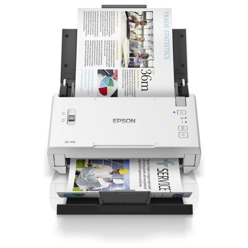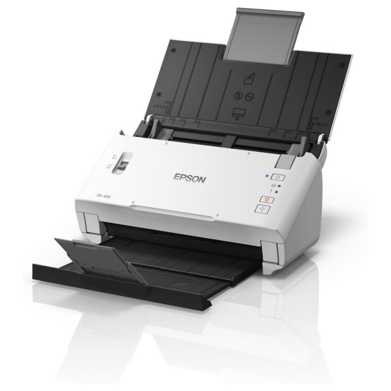 "Epson WorkForce DS-410. Maximale Scan-Abmessung: 215,9 x 3048 mm, Optische Scan-Auflösung: 600 x 600 DPI, Eingabe Farbtiefe: 48 Bit. Scanner-Typ: Scanner mit Vorlageneinzug, Produktfarbe: Schwarz, Weiß. Sensor-Typ: CIS, Tägliche Einschaltdauer (max): 3000 Seiten, Scanner-Dateiformate: BMP, JPG, PDF, PNG, TIFF. Kapazität der Papiereingabe (Standard): 50 Blätter, Kapazität des automatischen Dokumenteneinzugs (ADF): 50 Blätter. Maximale Papiergröße der ISO A-Serie: A4, Unterstützte Scan-Medientypen: Visitenkarte, Post Card(JPN), ISO-A-Formate (A0...A9): A4, A5, A6"