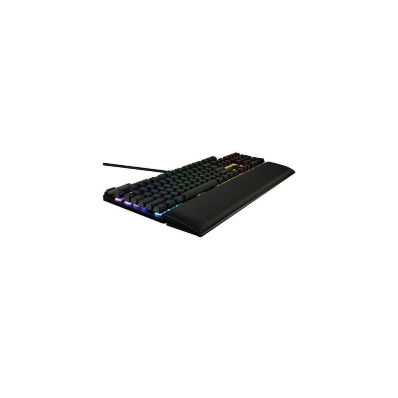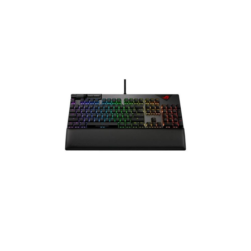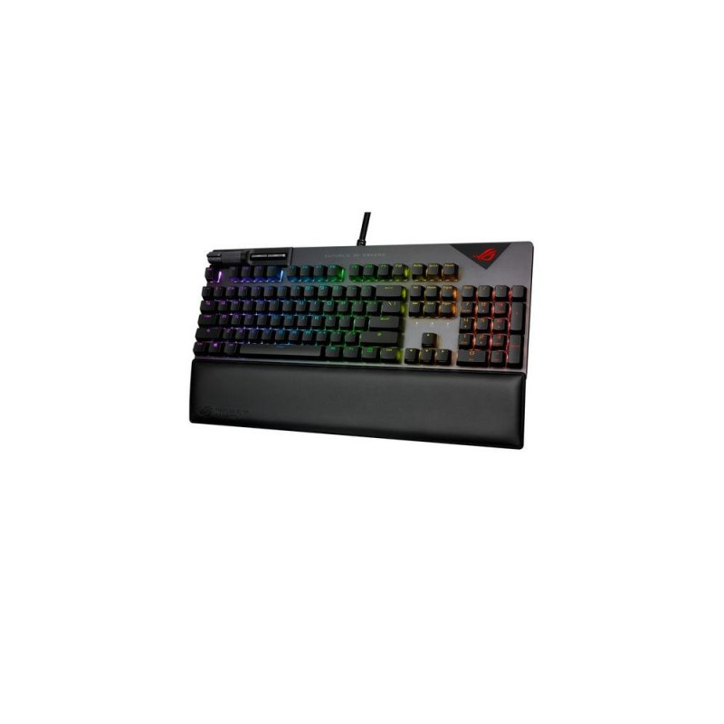 <b>FLARE UP YOUR GAME</b><br>The ROG Strix Flare II is the ultimate gaming keyboard to fire up your game. It’s loaded with a host of innovations, including ROG NX mechanical switches, PBT doubleshot keycaps, sound-dampening foam, 8000 Hz polling rate, 0.125 ms response time, dedicated media controls and detachable wrist rest.ASUS ROG Strix FLARE II PBT. Keyboard form factor: Full-size (100%). Keyboard style: Straight. Connectivity technology: Wired, Device interface: USB, Keyboard key switch: Mechanical. Backlight type: RGB LED, Wrist rest. Cable length: 2 m. Recommended usage: Gaming. Product colour: Black, Metallic