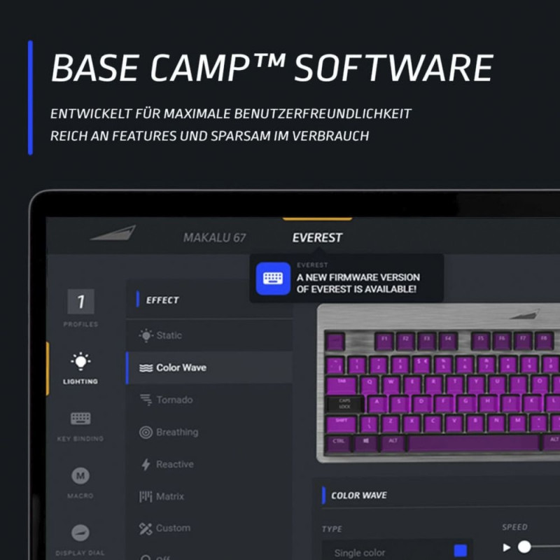 "Mountain Everest Core. Tastatur Formfaktor: Tenkeyless (80 - 87 %). Tastatur-Stil: Gerade. Übertragungstechnik: Kabelgebunden, Geräteschnittstelle: USB, Tastatur-Switch: Mechanischer Switch, Tastaturaufbau: QWERTZ. Typ der Hintergrundbeleuchtung: RGB-LED. Kabellänge: 2 m. Empfohlene Nutzung: Gaming. Produktfarbe: Grau"