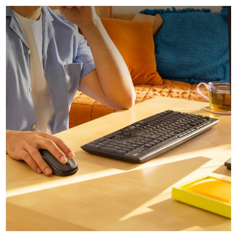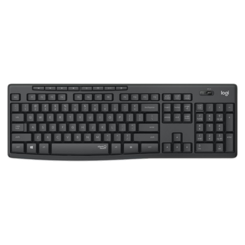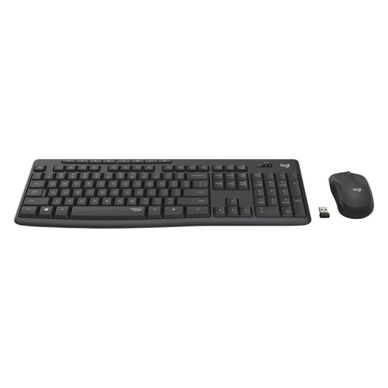"Logitech MK295 Silent. Tastatur-Stil: Gerade. Übertragungstechnik: Kabellos, Geräteschnittstelle: RF Wireless, Tastaturaufbau: QWERTZ, Empfohlene Nutzung: Büro. Produktfarbe: Graphit. Maus enthalten"