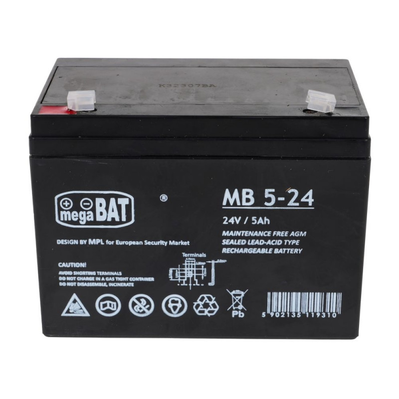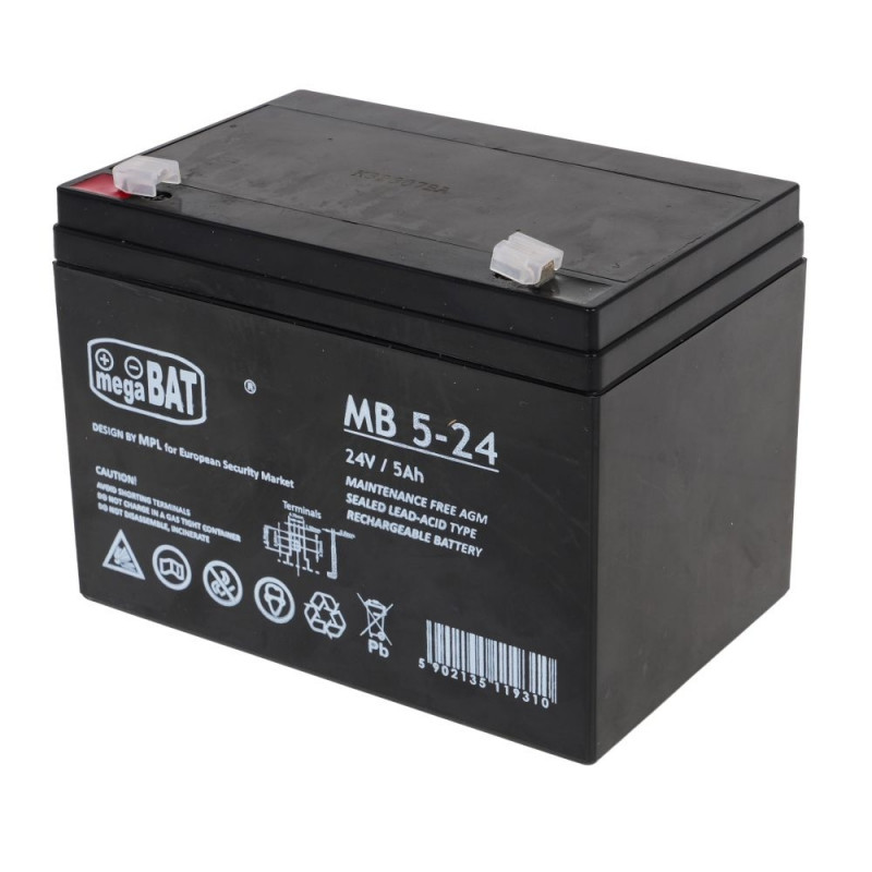 Specification: Battery 24V/5AH Tension: 24V Capacity: 5AH Dimensions Length: 13.5 cm Width: 9 cm Depth: 10 cm Allowed charging voltage: 13.6-13.8 VDC/20°C ColorWarning: Last items in stock!