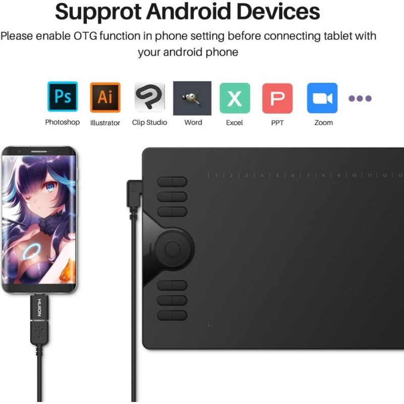 Graphics Tablet - HUION HS610 254x158.8mm, 8192 Pressure Levels, 12 Hotkeys