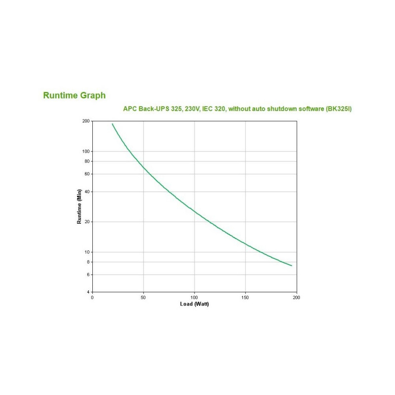 Output power capacity is 0.325 kVA with a maximum output power of 210 W. The UPS features a surge energy rating of 320 J and includes three IEC 60320 AC outlets.Product has been archived