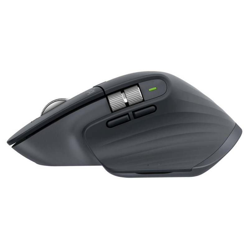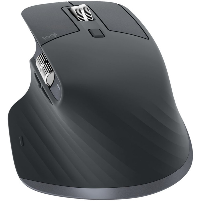 "Logitech MX Master 3S. Formfaktor: rechts. Geräteschnittstelle: RF Wireless + Bluetooth, Bewegung Auflösung: 8000 DPI, Tastentyp: Gedrückte Tasten, Knopfanzahl: 7, Scroll Typ: Rad. Energiequelle: Batterien. arbeitet auf jeder Oberfläche. Produktfarbe: Graphit"