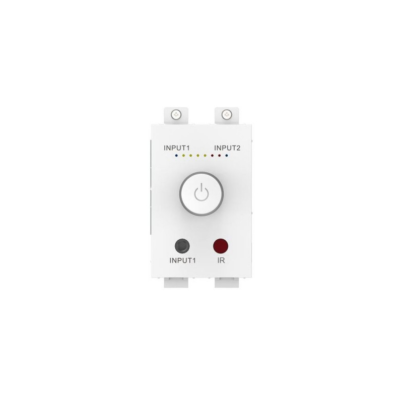 By using latest low-impedance digital amplifier chip technology the new Techconnect Amp module outputs a massive 2 x 25 watts RMS (at 8 ohms) but fits into the space of a Techconnect module.<br><br><b>Front Panel Input</b><br>Two Inputs are wired into the rear with removable phoenix connectors, but Input 1 is also duplicated on the front panel with a minijack socket for convenience. This “half-normalled” input disconnects the rear terminal while in use.<br><br><b>D-Class Amplifier</b><br>Digital amplifiers use no power unless they are amplifying program, so even on at full volume; unless it is receiving input it is effectively off. Digital amplifiers also have the advantage of running cold so a bulky heatsink is not necessary<br><br><b>Power Four Speakers</b><br>Don’t let size deceive you: the Techconnect Amp can drive into a 4 ohm load allowing you to power up to four 8 ohm speakers (or two 4 ohm speakers).<br><br><b>Preset Memory</b><br>By default when power is activated the Techconnect Amp turns on and resumes the most recent settings. For hospitality applications it can be set to return to a preset input and level whenever it is powered on – for example in hotel guest rooms.<br><br><b>Tactile Dial</b><br>A simple clear control interface makes the product easy to use long press on the dial to power on and off. Short press to change input.<br><br><b>Remote Control</b><br>A remote control is included and IR receivers are positioned on the front and rear for integration with a control system such as the Techconnect Control. Note: there is no tone control with this amplifier. Vision’s spare remote controls have tone buttons but they do not work with this product.<br><br><b>Easy to Install and Uninstall</b><br>A robust module that is easy to install or remove and disconnect from the front. Removable phoenix connectors allow non-technical end users to uninstall it very easily if required.<br><br><b>Cables Included</b><br>Speaker cable is included plus short input cables are included for connection to the rear of adjacent input modules on the Techconnect.<br><br><b>Secure</b><br>Ideal when you don’t have furniture to sit an amplifier on, and because it is mounted to the wall it is much less obvious as a target for theft.<br><br><b>Close at Hand</b><br>Can be positioned anywhere in the room making it perfect for training rooms, boardrooms, and classrooms.<br><br><b>Integrated Techconnect Family</b><br>Included is a single-gang backbox and surround, or alternatively you can mount it in a double-gang surround with other Techconnect modules.Vision TC3-AMP. Audio output channels: 2.0 channels, Peak power per channel: 25 W, Amplifier class: D. AC input voltage: 100-240 V, AC input frequency: 50 - 60 Hz, DC input voltage: 12 V. Width: 42 mm, Depth: 46 mm, Height: 64 mm. Certification: RoHS, WEEE, CE/EMC, RCM, FCC. Package dimensions (WxDxH): 240 x 205 x 63 mm, Package weight: 1.1 kg