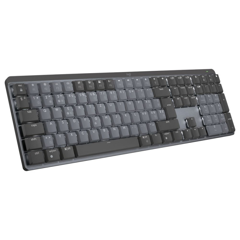 "Logitech Master 920-010752. Tastatur Formfaktor: Volle Größe (100%). Tastatur-Stil: Gerade. Übertragungstechnik: Kabellos, Geräteschnittstelle: RF Wireless + Bluetooth, Tastatur-Switch: Mechanischer Switch, Tastaturaufbau: QWERTZ. Typ der Hintergrundbeleuchtung: LED. Kabellänge: 1 m. Empfohlene Nutzung: Büro. Produktfarbe: Graphit"