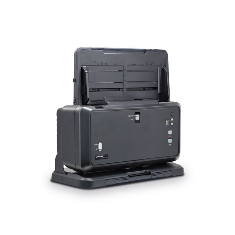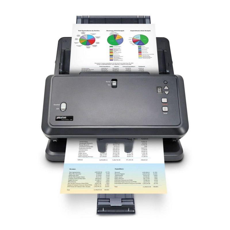 The Plustek SmartOffice S60 is an A3 document scanner designed for efficient office scanning. With a scanning speed of 64 pages per minute, this scanner allows for quick and effective document processing. The integrated automatic document feeder (ADF) with a capacity of up to 100 sheets ensures that even larger document stacks can be handled without any issues. The duplex scan enables simultaneous scanning of both sides of a sheet, further enhancing efficiency. The scanner supports a USB 3.2 connection for fast data transfer.