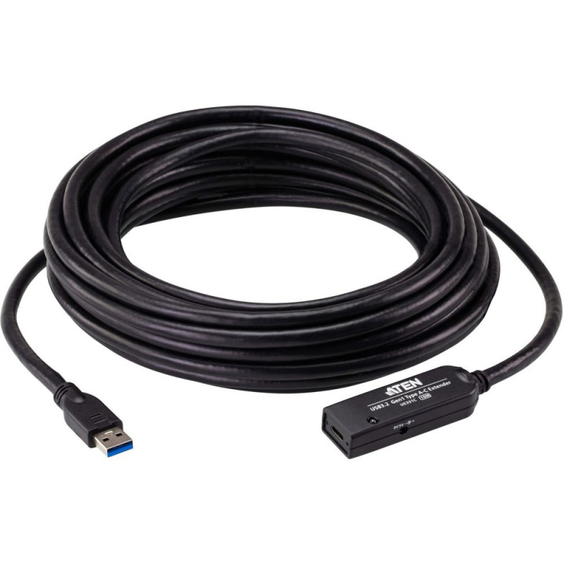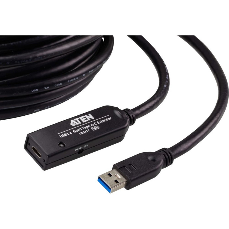 "ATEN UE331C. Kabellänge: 10 m. Anschluss 1: USB A, Anschluss 2: USB A, USB-Version: USB 3.2 Gen 1 (3.1 Gen 1), Max. Datenübertragungsrate: 5 Gbit/s, Produktfarbe: Schwarz"
