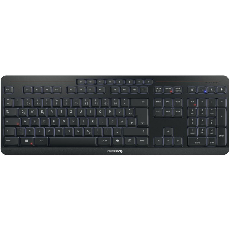 "CHERRY Stream desktop ultimate. Tastatur Formfaktor: Volle Größe (100%). Tastatur-Stil: Gerade. Übertragungstechnik: Verkabelt & Kabellos, Geräteschnittstelle: USB + RF Wireless + Bluetooth, Tastatur-Switch: Scherenschalter, Tastaturaufbau: QWERTZ. Typ der Hintergrundbeleuchtung: LED. Empfohlene Nutzung: Heimbüro. Produktfarbe: Schwarz. Maus enthalten"