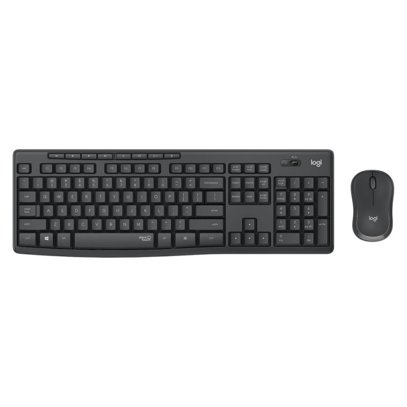 "Logitech MK295 Silent. Tastatur Formfaktor: Volle Größe (100%). Tastatur-Stil: Gerade. Übertragungstechnik: Kabellos, Geräteschnittstelle: RF Wireless, Tastaturaufbau: QWERTY, Empfohlene Nutzung: Büro. Produktfarbe: Graphit. Maus enthalten"