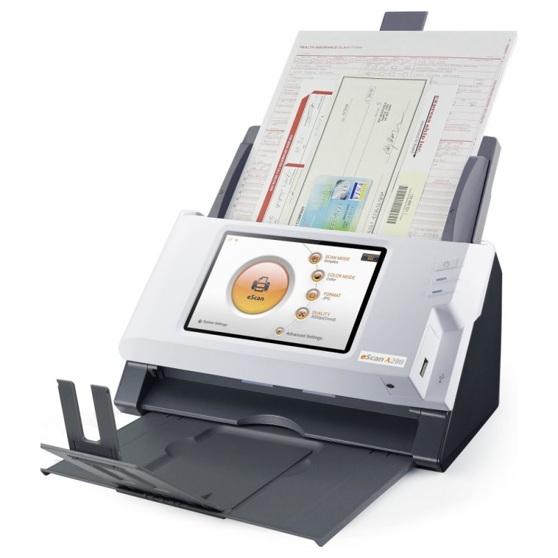 "Plustek eScan A280 Essential. Maximale Scan-Abmessung: 216 x 356 mm, Optische Scan-Auflösung: 600 x 600 DPI, Scan-Geschwindigkeit (s/w, niedrige Auflösung, A4): 20 Sekunde/Seite. Scanner-Typ: ADF-Scanner, Produktfarbe: Schwarz, Weiß, Display: LED. Sensor-Typ: Dual CIS, Tägliche Einschaltdauer (max): 2000 Seiten, Scan to: Cloud, E-Mail, FTP, PC, SMB, USB. Kapazität des automatischen Dokumenteneinzugs (ADF): 50 Blätter. Maximale Papiergröße der ISO A-Serie: A4, Mediengewicht des automatischen Vorlageneinzugs (AVE): 40 - 157 g/m², Maximales Scanformat (Automatischer Vorlagenwechsler): 216 x 356 mm"