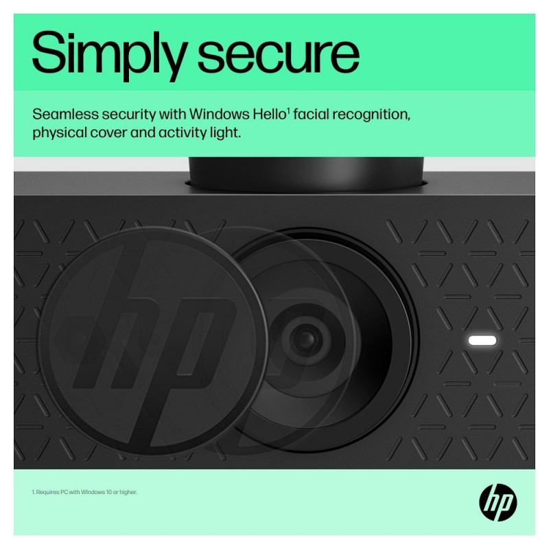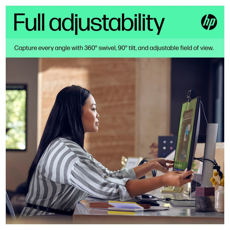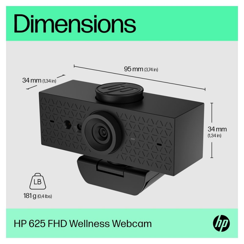 "HP 625 FHD-Webcam. Megapixel (ca.): 4 MP, Maximale Video-Auflösung: 1920 x 1080 Pixel, Kamera HD Typ: Full HD. Schnittstelle: USB, Produktfarbe: Schwarz, Befestigungstyp: Clip. Unterstützt Windows-Betriebssysteme: Windows 10, Windows 11. Breite: 95 mm, Tiefe: 65,5 mm, Höhe: 55,5 mm. Verpackungsbreite: 124 mm, Verpackungstiefe: 106 mm, Verpackungshöhe: 63 mm"