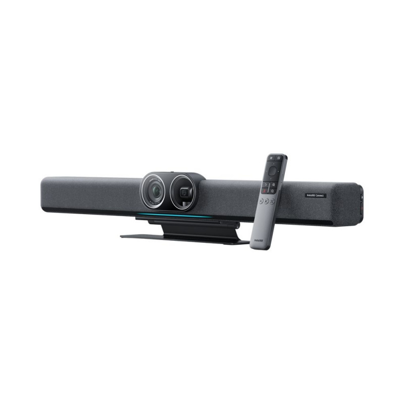Insta360 Connect – AI-Powered 4K Conference CameraInsta360 Connect is an advanced all-in-one video bar designed to enhance your virtual meetings. Featuring a crystal-clear 4K UHD camera, intelligent AI autoframing, and noise-canceling microphones, it ensures everyone can clearly be seen and heard. With simple USB-C connectivity, it’s quick and easy to set up—ideal for both home offices and meeting rooms.Two built-in cameras ensure clear, dynamic coverage of your meetings. One wide-angle lens captures the entire room, while the second camera, mounted on a gimbal, automatically zooms in and follows the active speaker.Intelligent AI FeaturesInsta360 Connect uses smart AI technology to deliver smooth, automated speaker tracking and group framing. The camera effortlessly keeps speakers centered, even as they move around the room. A special whiteboard mode clearly captures presentations, ensuring important information is always visible.Professional Audio QualityThe built-in microphone array clearly picks up voices throughout the room, effectively reducing background noise and echo. Everyone can be heard clearly, even in larger conference spaces.Easy Setup and CompatibilityDesigned for simplicity, Insta360 Connect connects easily to your computer with USB-C. It works seamlessly with all major conferencing platforms like Zoom, Teams, Google Meet, and Webex. Additional connectivity options include HDMI, Ethernet, Wi-Fi, and Bluetooth.Ideal for Medium Meeting RoomsThe camera is perfect for rooms of 6 to 14 people, including conference rooms, classrooms, boardrooms, and training facilities. A simple remote control and flexible mounting options ensure an easy and adaptable setup.What's in the BoxInsta360 Connect cameraDesk mountUSB-C cable and HDMI cablesPower adapterRemote controlQuick Start Guide