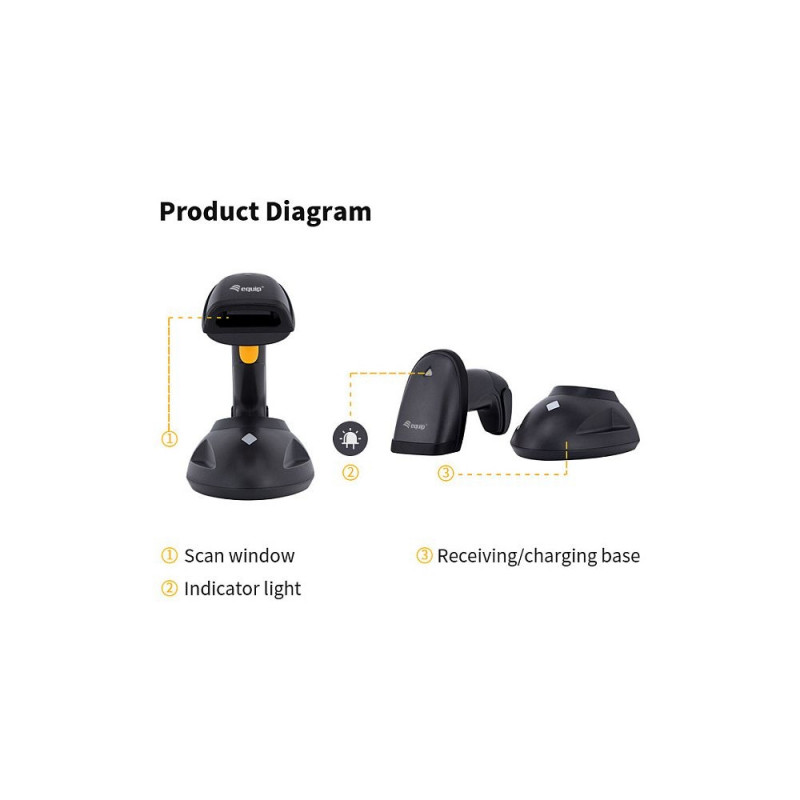 "Equip Barcode Handscanner 2D Laser Wireless USB schwarz"