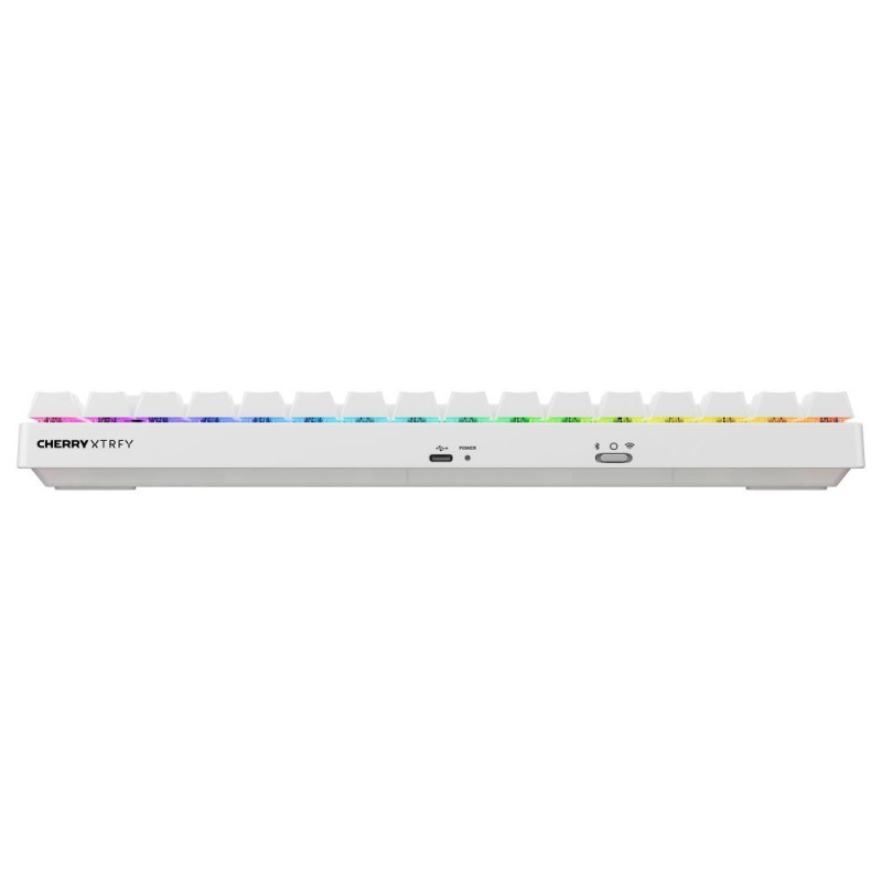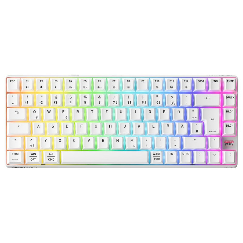 "CHERRY XTRFY K33 Compact Wireless. Tastatur Formfaktor: 75%. Tastatur-Stil: Gerade. Übertragungstechnik: Kabellos, Geräteschnittstelle: USB + RF Wireless + Bluetooth, Tastatur-Switch: Mem-chanical key switch, Tastaturaufbau: QWERTZ, Tastatur - Tastenanzahl: 84. Typ der Hintergrundbeleuchtung: RGB-LED. Kabellänge: 1,5 m. Empfohlene Nutzung: Gaming. Produktfarbe: Weiß"