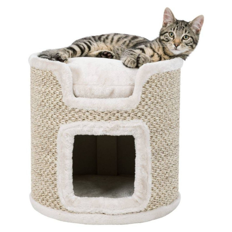 Ria Cat Tower sisal/plush (polyester) cave fitted with plush/fleece (polyester) padded platforms with reversible cushion: washable by hand colour: light grey