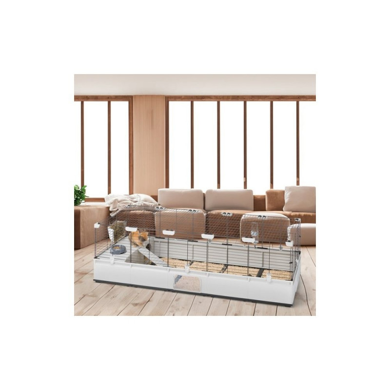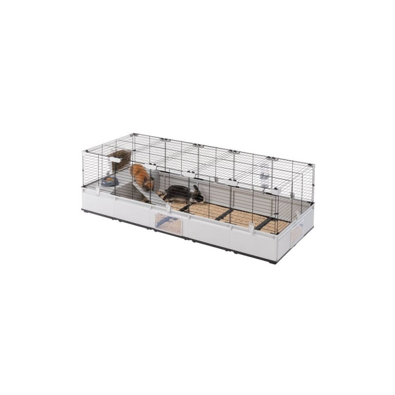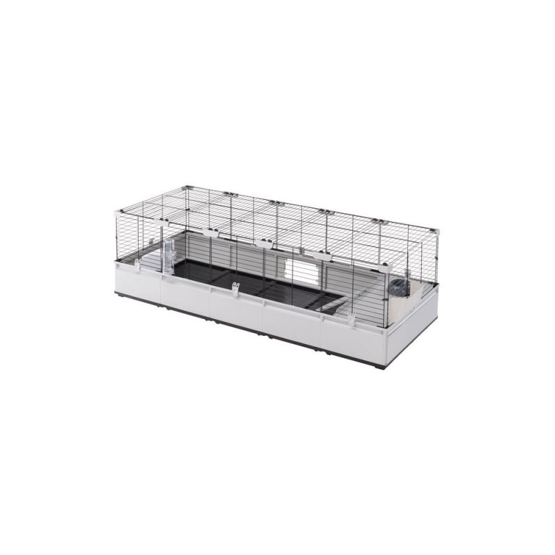 The Ferplast 179 x 72 x 56cm cage is a modular, expandable enclosure designed for rabbits and domestic guinea pigs. Its sturdy construction allows for easy modification or extension to accommodate the needs of your pets.