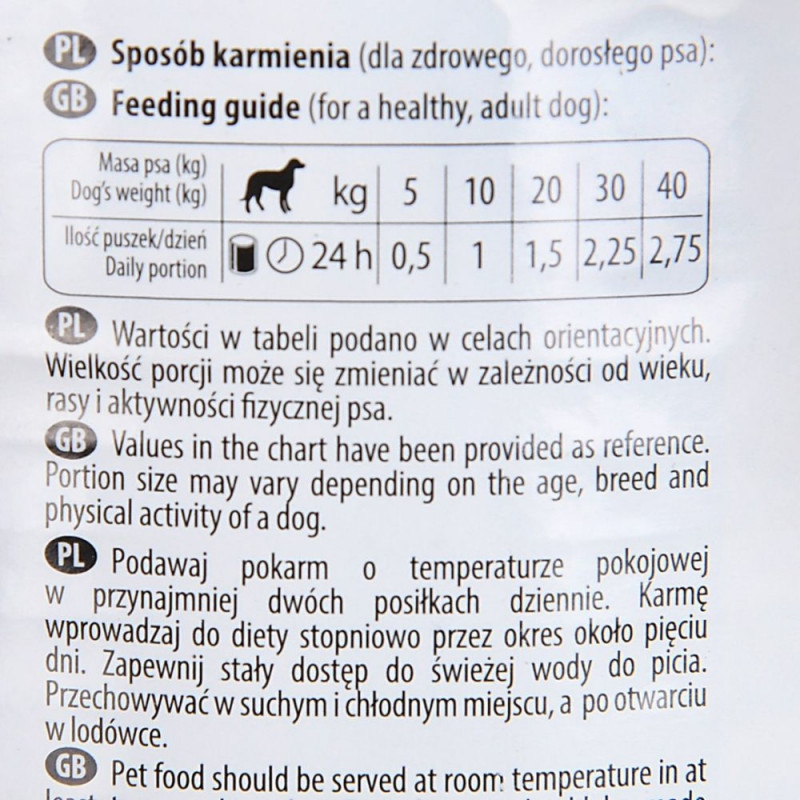 800g can with trout as the main flavor, gluten-free and soy-free. Adult dog food suitable for all breeds, with a serving size of 800g.Warning: Last items in stock!