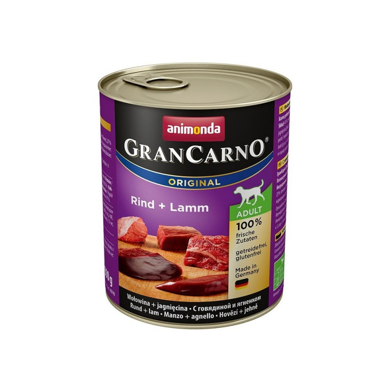 The Animonda Grancarno Original is a wet dog food specifically formulated for adult dogs of all breeds, with a main flavor combination of lamb and beef. It is free from artificial colors, soy, sugar, chicken, grains, and other common allergens.