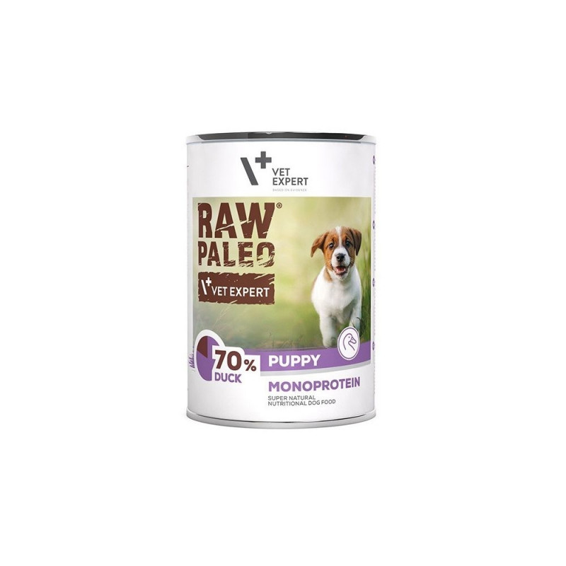 RAW PALEO Puppy Monoprotein Duck in a 400g pack. Grain-free formula suitable for puppies.Warning: Last items in stock!
