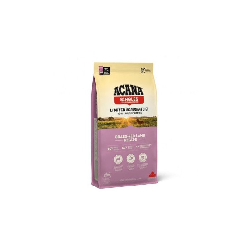 ACANA Singles Grass-Fed Lamb is a gluten-free, soy-free dry dog food suitable for all breeds and adult dogs. It contains 31% protein and is designed for pets with food allergies or intolerances.Warning: Last items in stock!