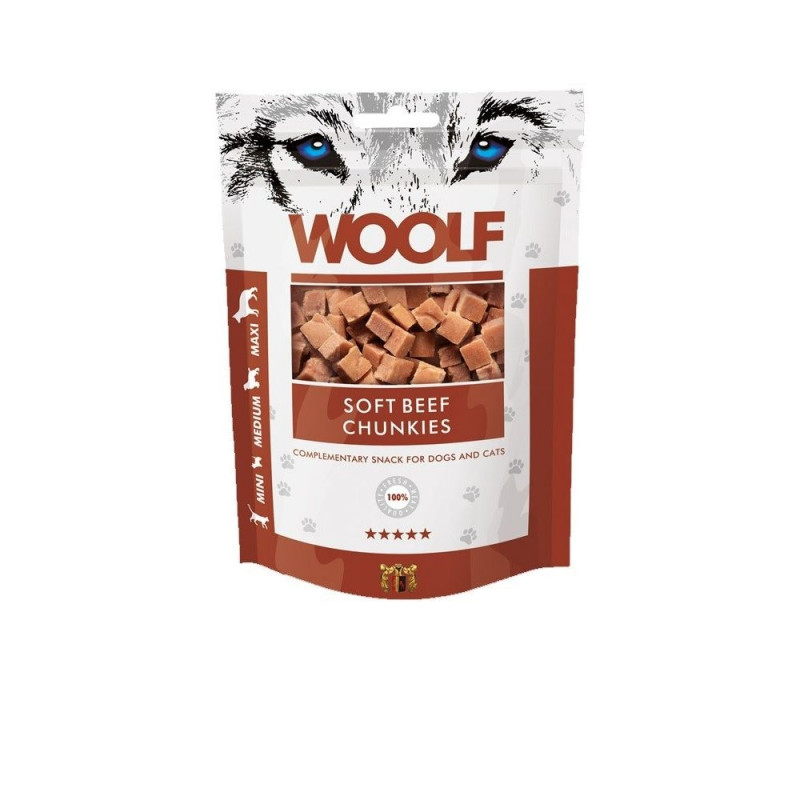 Dog and Cat Treat - WOOLF Soft Beef Chunkies 100g Gluten Free