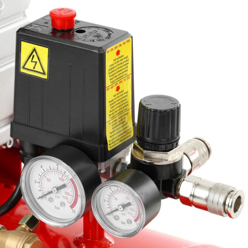 Power 1500 W, power supply 230 V / 50 Hz. Capacity is 186 l / min. The oil level display. Max. pressure of 8 bar. The tank of 50 liters. Automatic on and off. Two pressure gauge. Weight 30 kg.