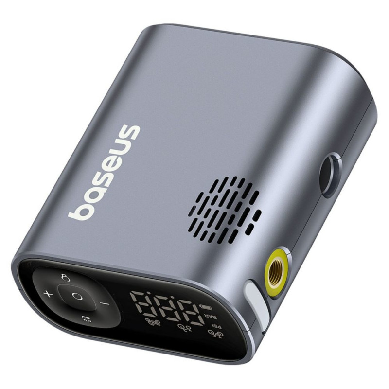 The Baseus bike pump (model C11169000121-00) is a compact, rechargeable bike pump with a digital display and impressive performance. With up to 150 PSI pressure and a re-inflation time of only 90 seconds per tire, it is ideal for bicycles, e-bikes, and other sports equipment. Its high-quality alloy steel housing and intelligent pressure shut-off make it the perfect companion for on the go.