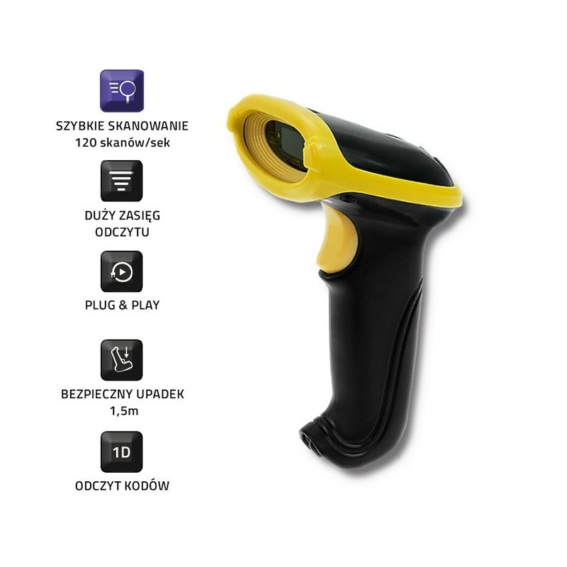 - Plug & Play interface - it guarantees the immediate operation of the barcode scanner without installing additional software,
