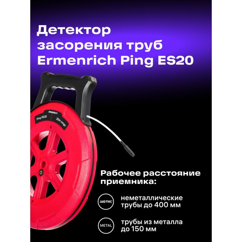The Ermenrich Ping ES20 Wall Pipe Blockage Detector is designed to locate blockages in metal and non-metal pipes made of steel, copper, iron, PVC, plastic, or cement. It is a great tool for checking the condition of water pipes and sewer pipes for both professional and domestic use.