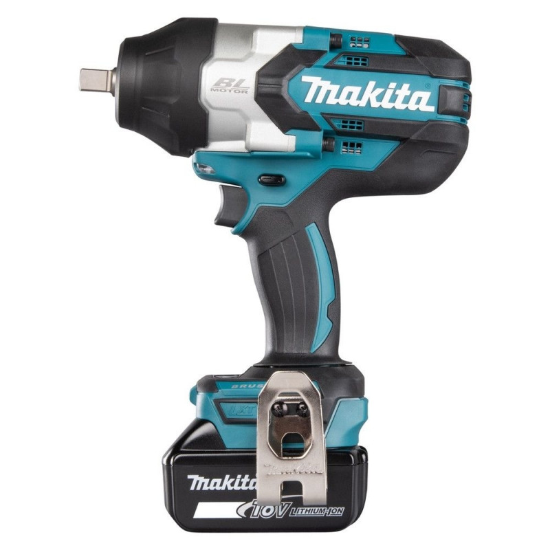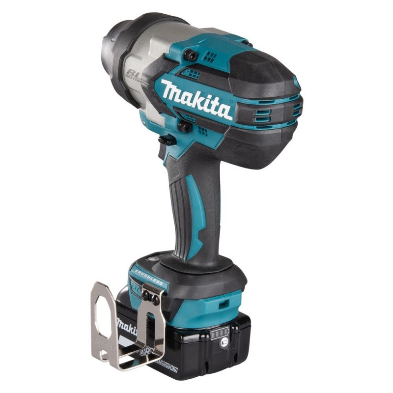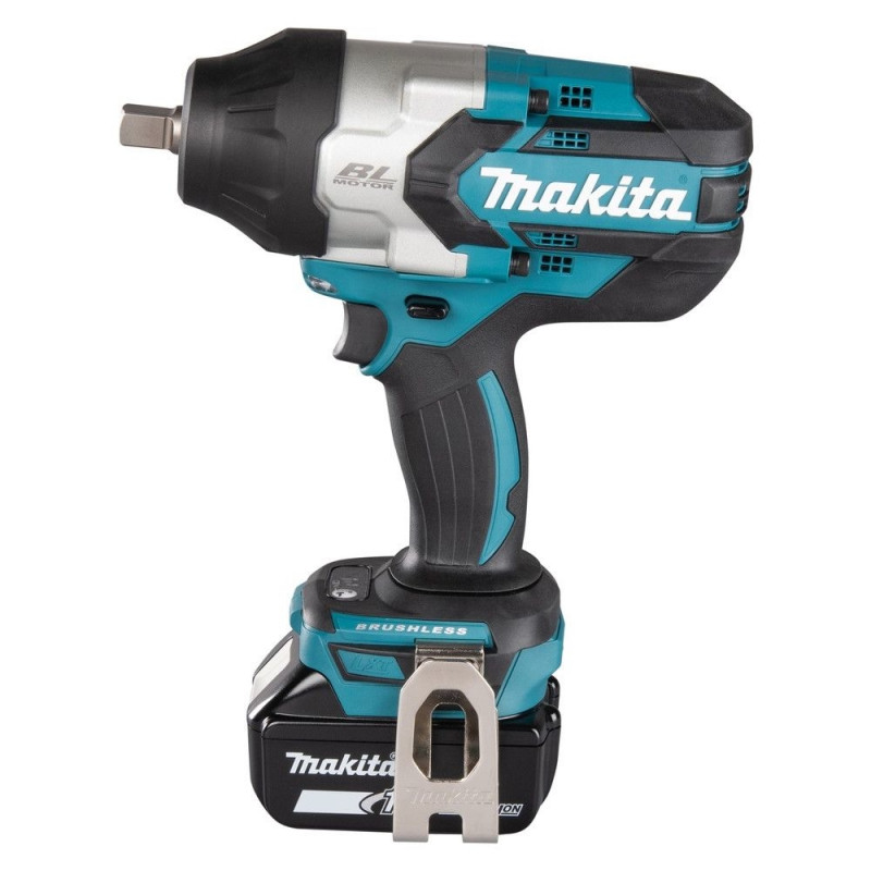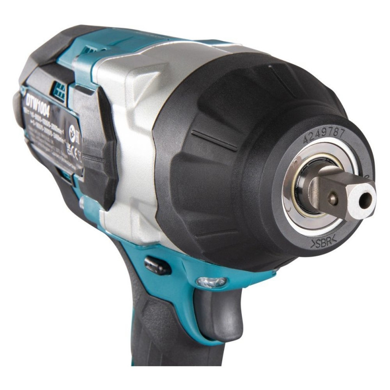 "Makita DTW1004Z. Produkttyp: Schlagschrauber, Motortyp: Bürstenlos, Produktfarbe: Schwarz, Türkis. Laufwerksgröße: 1/2"", Leerlaufdrehzahl (max.): 2200 RPM, Drehmoment (max.): 1050 Nm. Energiequelle: Akku, Akku-/Batterietechnologie: Lithium-Ion (Li-Ion), Akku-/Batteriespannung: 18 V. Breite: 99 mm, Tiefe: 261 mm, Höhe: 254 mm"