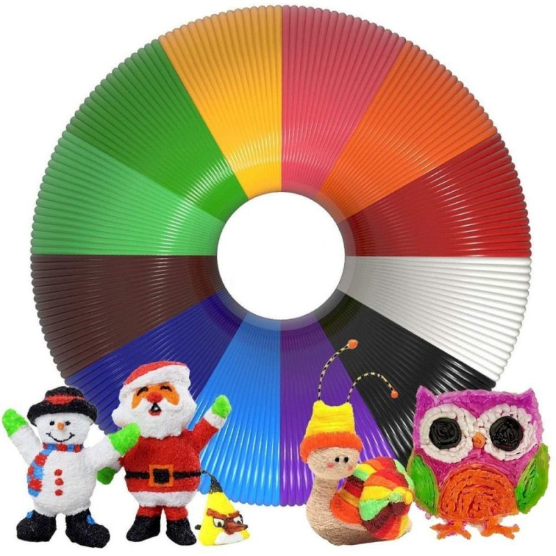 Material for Fusion 3D Pen. 10 colors - black, white, red, pink, light pink, orange, yellow, blue, purple, green. 5 meters of each colors. Diameter 1.75mm
