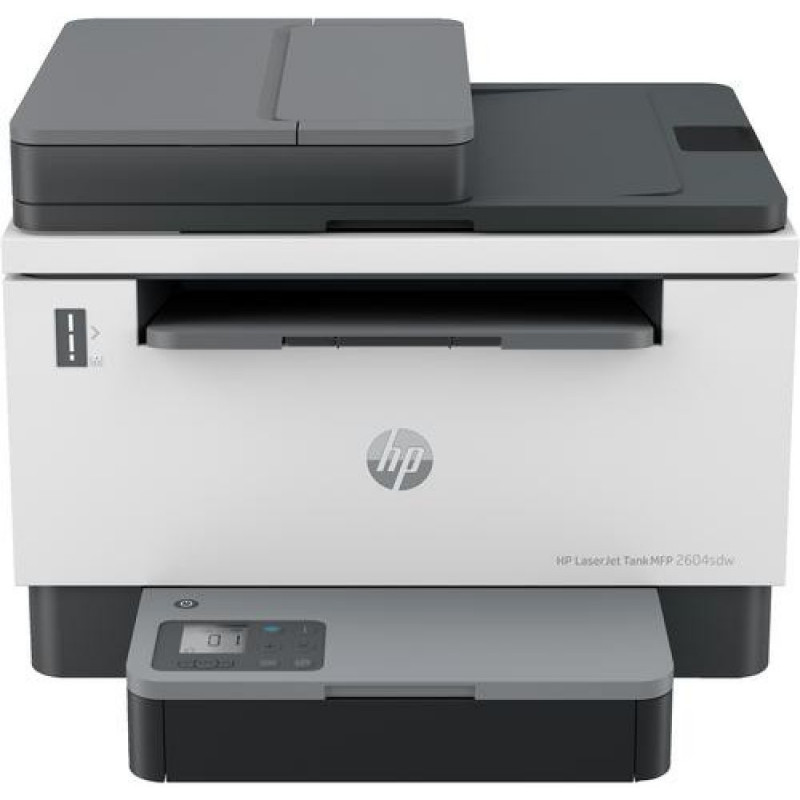 <b>Powerful productivity. Super-affordable refill.</b> Discover business-ready capabilities and savings with HP LaserJet Tank MFP 2604sdw All-in-One Printer pre-filled with up to 5,000 pages of Original HP Toner.<sup>[1]</sup><br><br>HP LaserJet Tank MFP 2604sdw Printer. Print technology: Laser, Printing: Mono printing, Maximum resolution: 600 x 600 DPI. Copying: Colour copying, Maximum copy resolution: 600 x 1200 DPI. Scanning: Colour scanning, Optical scanning resolution: 600 x 600 DPI. Duplex functions: Print, Copy. Maximum ISO A-series paper size: A4. Wi-Fi. Direct printing. Product colour: Black, Grey