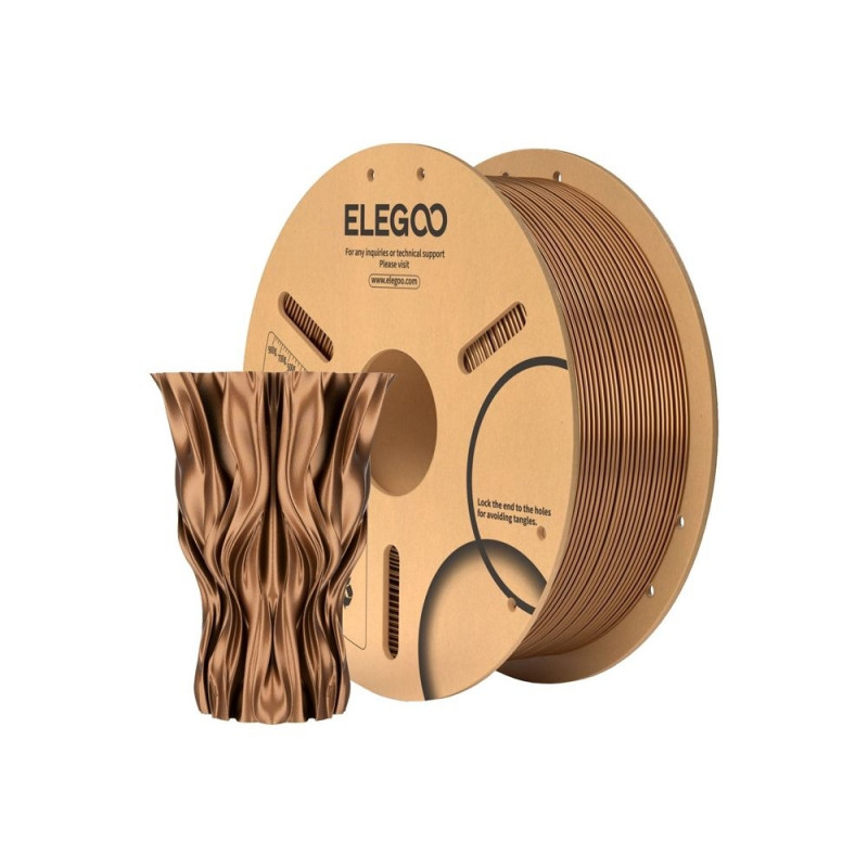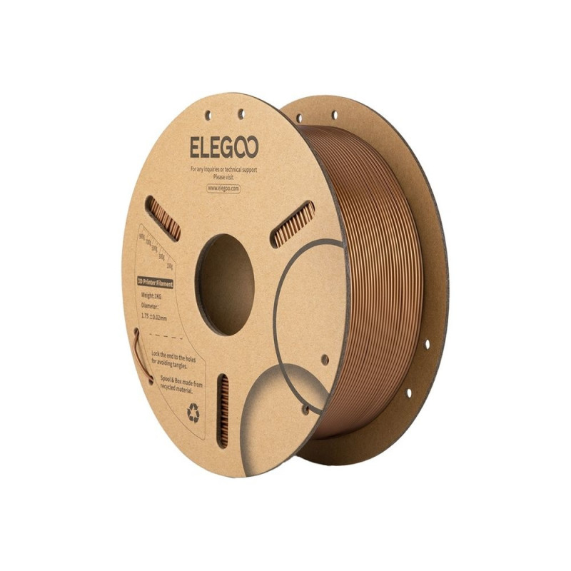 Bronze-colored filament from ELEGOO with a subtle metallic sheen allows you to create models that look elegant and stylish. This effect works great for figures, props, costume details and decorations where visual depth and a classic finish are important. The material is based on PLA (polylactide - a plant-based biodegradable plastic), so it is environmentally friendly. There is 1 kg of filament on the spool, which is enough for many medium and large prints.
