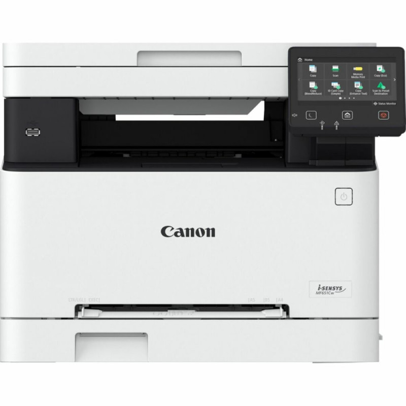 The Canon MF651CW multifunction printer is a device designed for offices that require versatility and quality in their daily printing, scanning, and copying tasks. It is a color laser printer that stands out for delivering a professional finish with a printing speed of up to 18 pages per minute, ensuring a fast and efficient workflow. Its design combines black and white colors, giving it a modern and sleek look that fits well in any work environment. Connectivity is one of its strong points, as it includes built-in Wi-Fi, allowing wireless printing from various devices without the need for cables or direct connection to the printer, providing convenience and flexibility. It also features a color LCD screen, which makes navigating menus, selecting functions, and monitoring task status easier, enhancing the user experience in daily management. The multifunction technology of this device allows not only high-quality color laser printing but also precise document scanning and fast copying, making it a comprehensive solution for small and medium offices or professional settings with color printing needs. In summary, the Canon MF651CW is a multifunction printer that combines speed, wireless connectivity, and ease of use through an LCD screen, positioning itself as a practical and versatile option for those who need a reliable device capable of covering various printing and digitizing needs with quality and efficiency.
