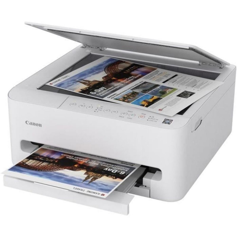The Canon 7181C006 is a multifunction printer designed to meet home or office printing, copying, and scanning needs with its advanced color inkjet technology. This all-in-one device delivers a maximum print resolution of 1200 x 1200 dpi, ensuring sharp documents and photos with clear detail in both text and images. Its ability to print double-sided (duplex function) helps save paper and optimize resources, making it an efficient choice for users concerned with sustainability and practicality. The integrated scanner offers an optical resolution up to 1200 x 2400 dpi for precise document digitization and vivid colors, while the color copy function allows faithful reproduction of documents and photos. This printer supports flexible connectivity via Wi-Fi, USB, and USB 2.0, enabling direct printing from mobile devices and computers without cables. It is compatible with A4 paper, the most common format for home and office tasks, and features an elegant white finish that fits any environment. Its compact, functional design makes it suitable for desks with limited space, while maintaining easy access to all main functions. In summary, the Canon 7181C006 stands out for its versatility and ease of use, providing comprehensive printing, scanning, and copying solutions in a single device for users seeking efficiency and quality in everyday tasks.