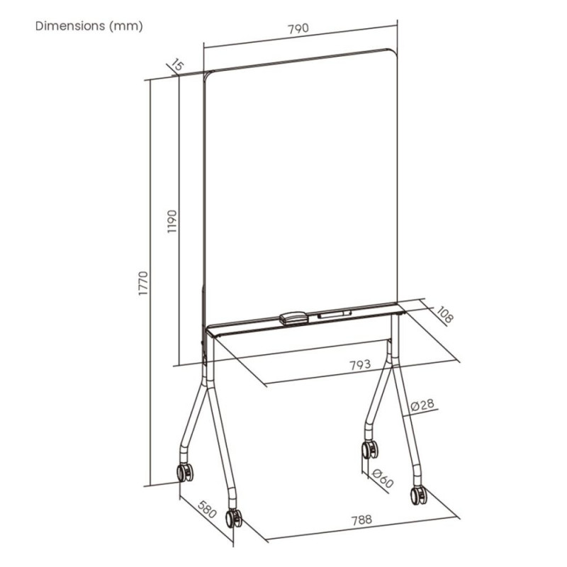 Ergo Office mobile dry erase board, vertical orientation, white, single sided, with shelf, board dim
