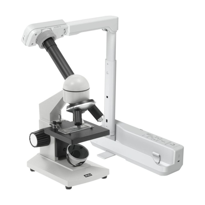 • Flexible for 2D visuals and 3D objects: Adjustable height, 90º head rotation and microscope attachment